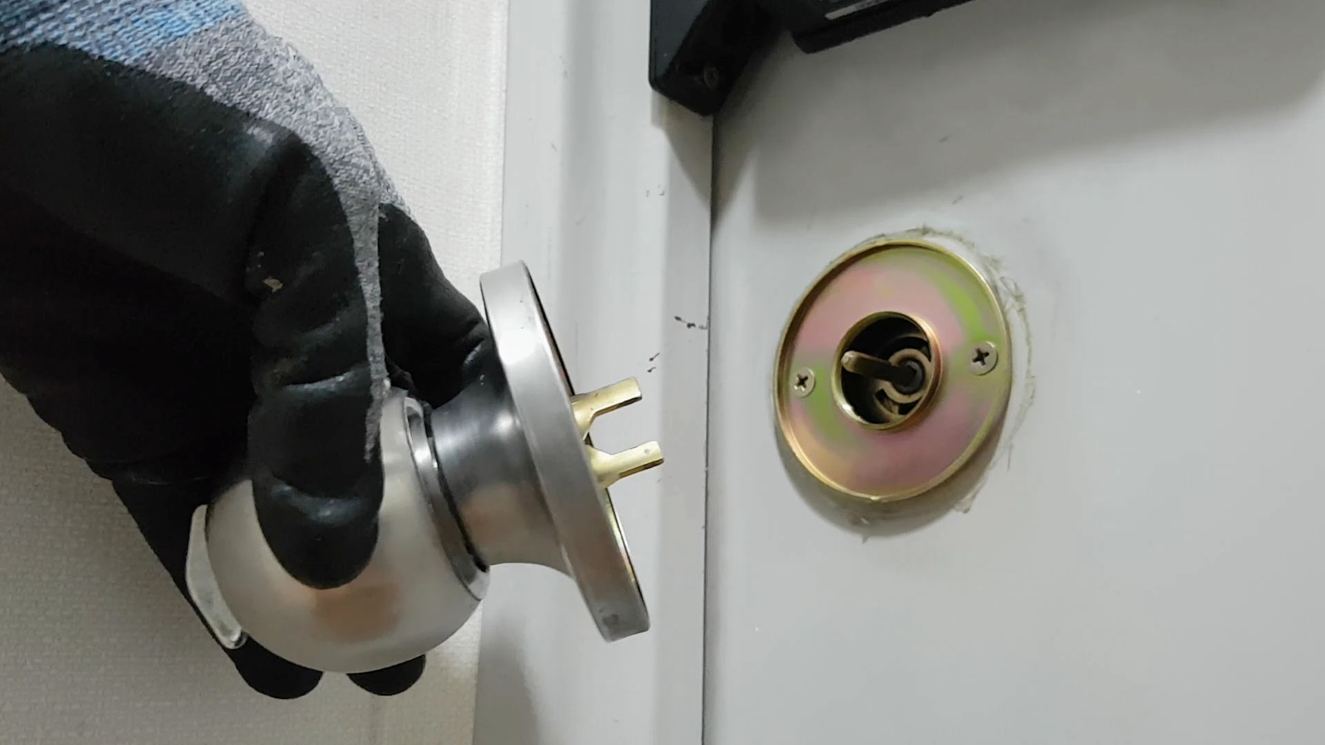 이후 잠금장치와 손잡이를 돌려서 정상적으로 작동하는지 확인하고 문을 닫아서 테스트를 합니다.