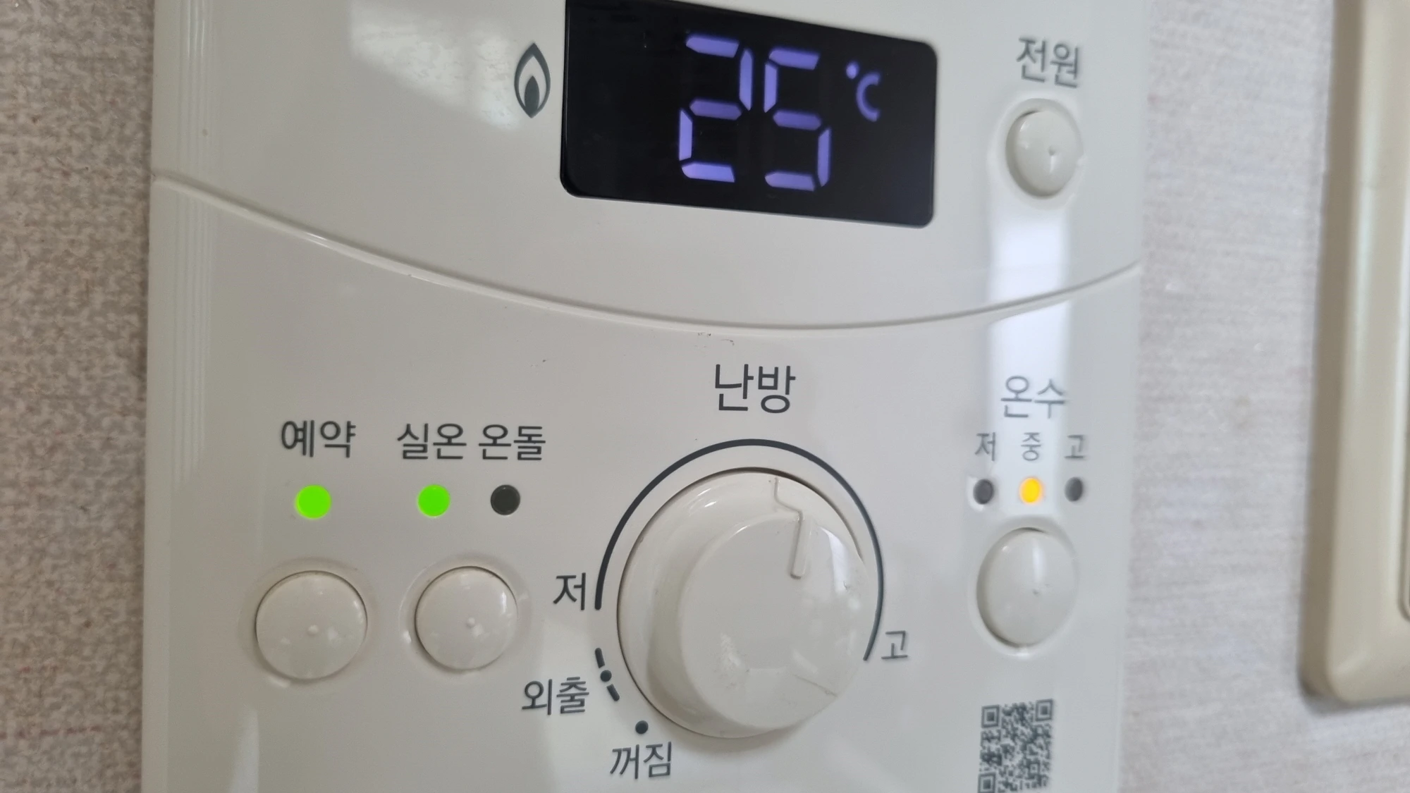 위에 사진은 보일러 난방 방식을 실온으로 선택하고 설정 온도를 25도로 맞춰놓은 상태입니다.