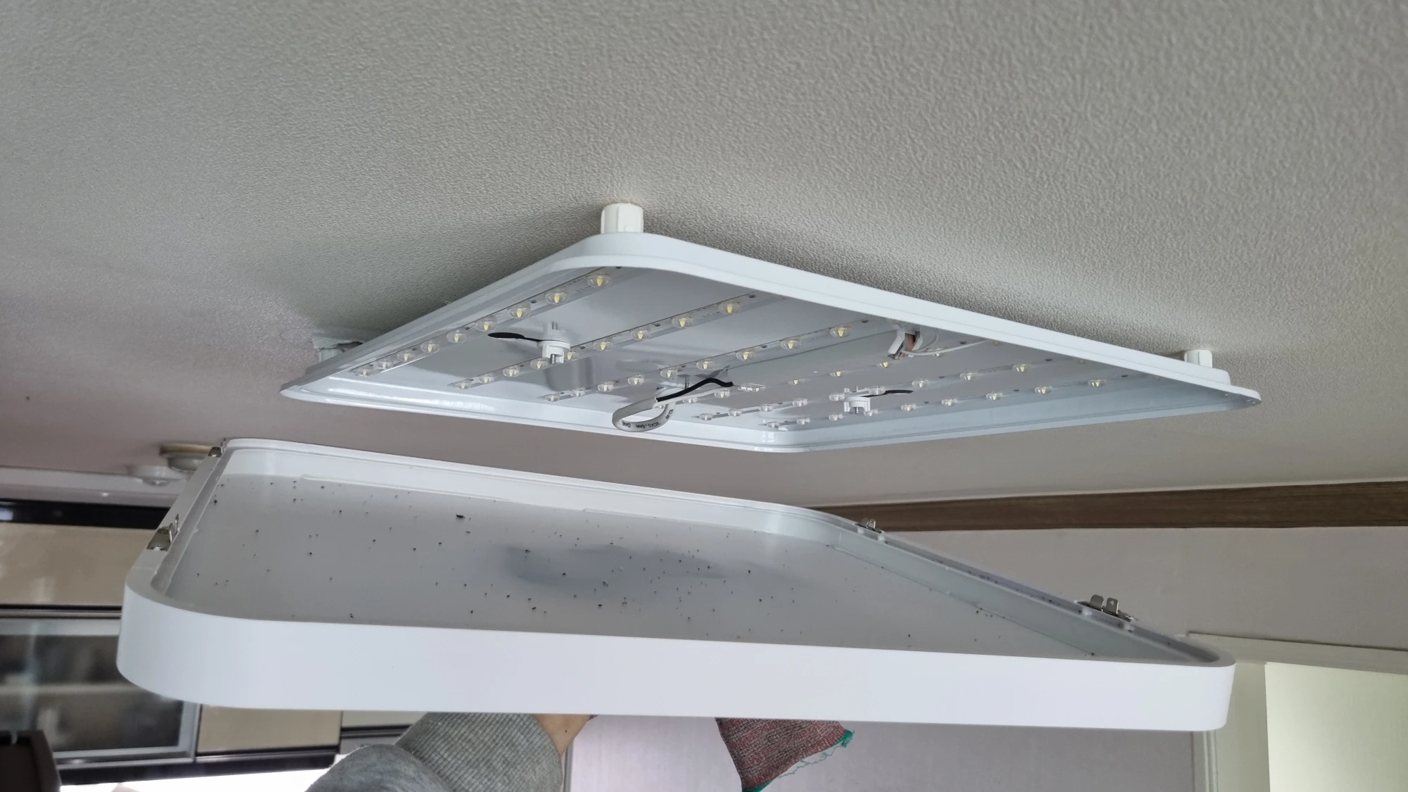 LED 전등 커버에도 먼지와 죽은 벌레가 많이 들어있었습니다.