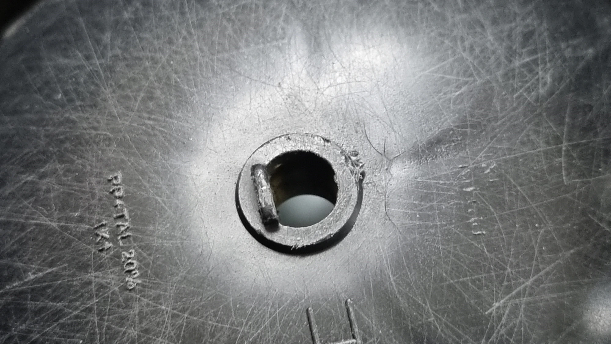 오른쪽 사진 화살표가 가리키는 틈에 얇은 드라이버나 송곳을 끼우고 바깥쪽으로 당겨서 가운데 사진처럼 빼냈습니다.