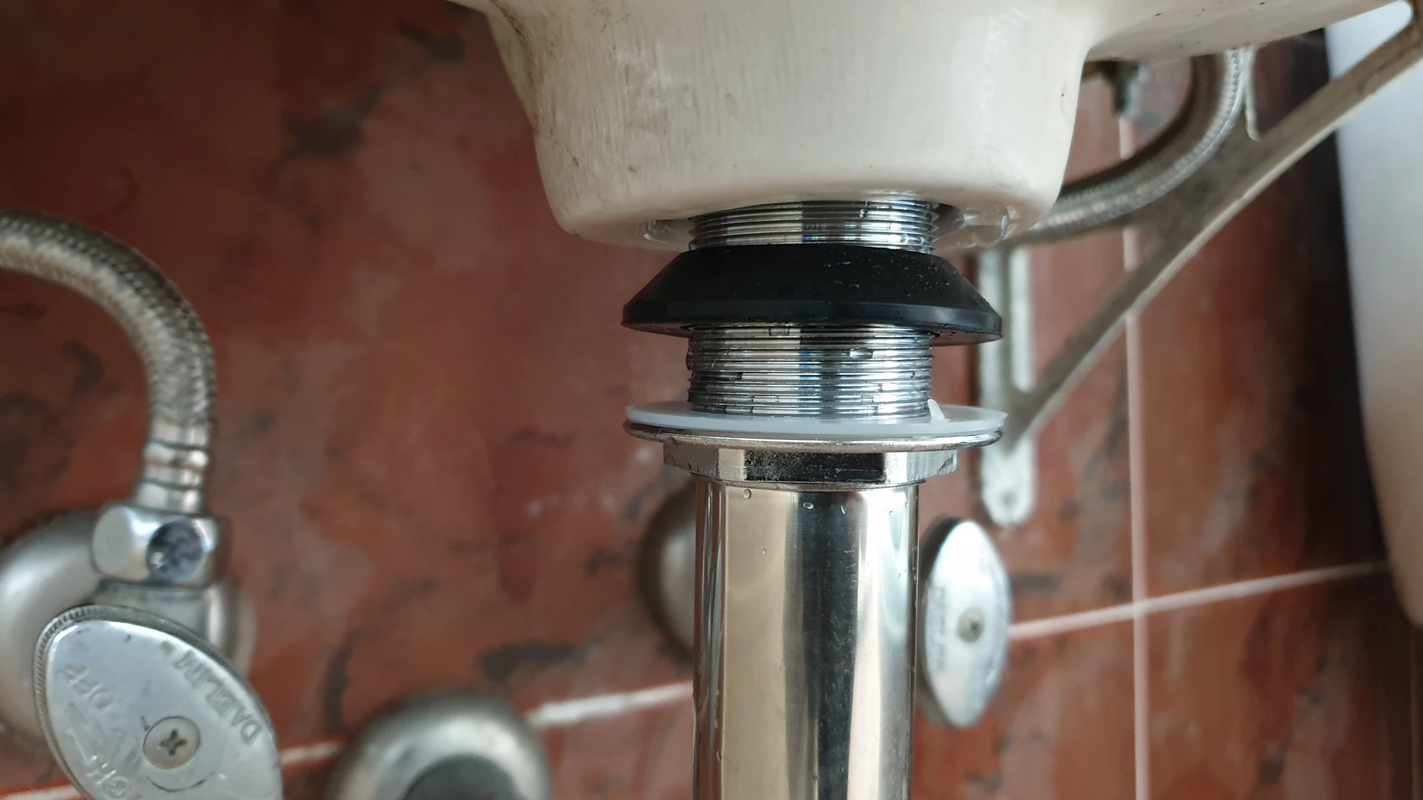 - 세면대 아래 배관에 패킹과 와셔를 끼우고 너트를 조여 고정하기