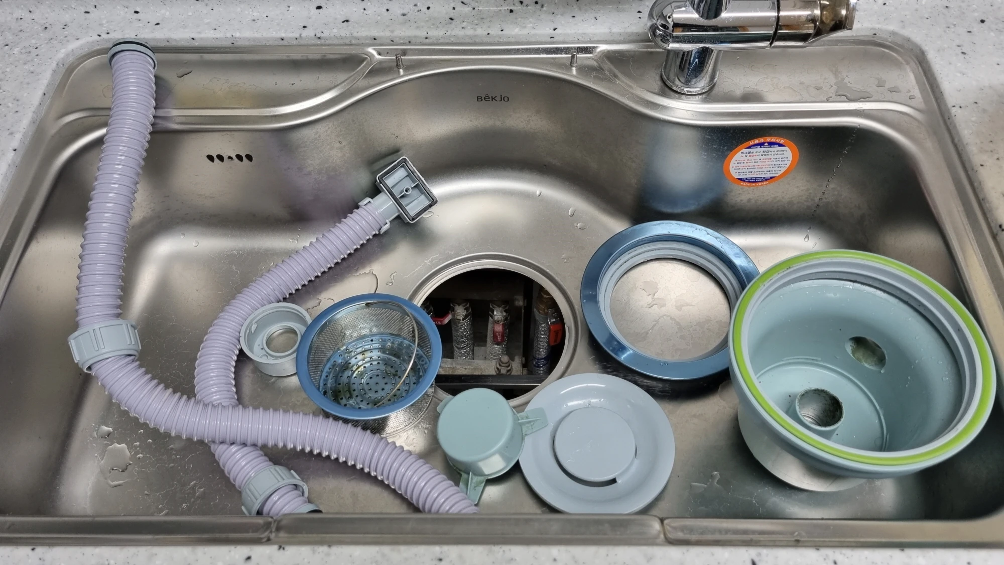 오래된 주방 싱크대 배수구와 배수관 분해 교체 설치 방법, 분해해서 청소할 때주방 싱크대 배수구와 배수관은 아무래도 쉽게 더러워질 수 있고 적당한 시기에 청소 및 관리를 해주지 않으면 악취가 나거나 위생적으로도 좋지 않습니다.싱크대 배수구 배수관을 분해하지 않고 과탄산소다나 표백제, 기타 전용 세제 등을 이용해서 꾸준히 관리하시는 분들도 계시지만 분해하고 조립하는 것이 크게 어렵지 않기 때문에 가끔 한 번씩 부품을 모두 분해해서 청소해 주면 훨씬 깨끗하고 청결하게 사용할 수 있습니다.물론 싱크대 배수구와 배수관 제품은 크게 비싸지 않기 때문에 청소해서 다시 사용하는 것이 아주 불편한 상황이라면 새 배수구와 배수관으로 교체하는 것도 나쁘지 않습니다.또한 배관이나 연결 부품은 호환되는 경우가 많기 때문에 배..